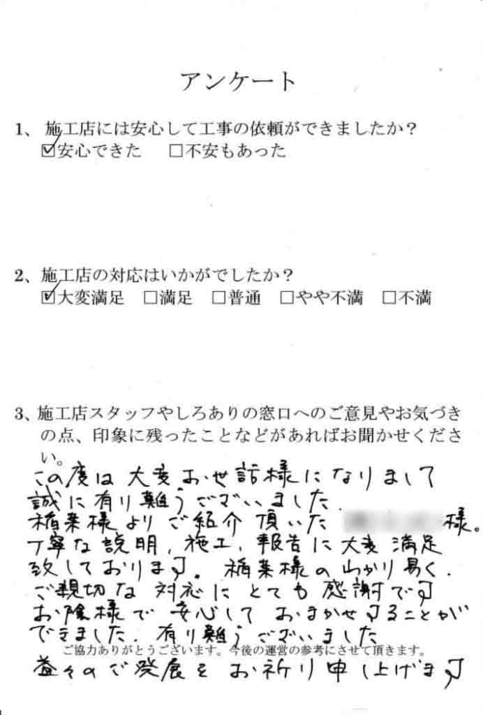 すでに3社ほど見積もりをとられていたそうですが、当社がご紹介した施工業者にご依頼をされました。
